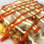 - Pon las papas o cepa de apio en 4 platos que puedan llevarse al microondas. Cubre las papas/cepa de apio con la carne caliente. Espolvorear con mozzarella y queso cheddar. La carne caliente debe derretir el queso, pero si no lo hace, calienta los platos en el microondas durante 90 segundos, o hasta que el queso se derrita.Rocía con mayonesa y ketchup y sirva de inmediato.